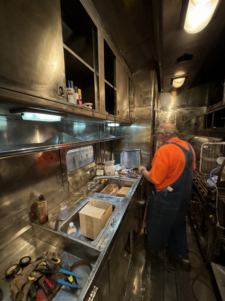 As we write this on April 23, 2024, we ironically find that it is World Book Day, and a book is something we are searching for. For over a year, our NCRy/PLA President, Henry Baum, has been meticulously working his way through the restoration of the kitchen in our Great Northern Railway Ranch Car ‘Hidden Lake’. From countless hours cleaning the stainless to repairing items around the kitchen, Henry’s work is now getting down to some of the smaller details.