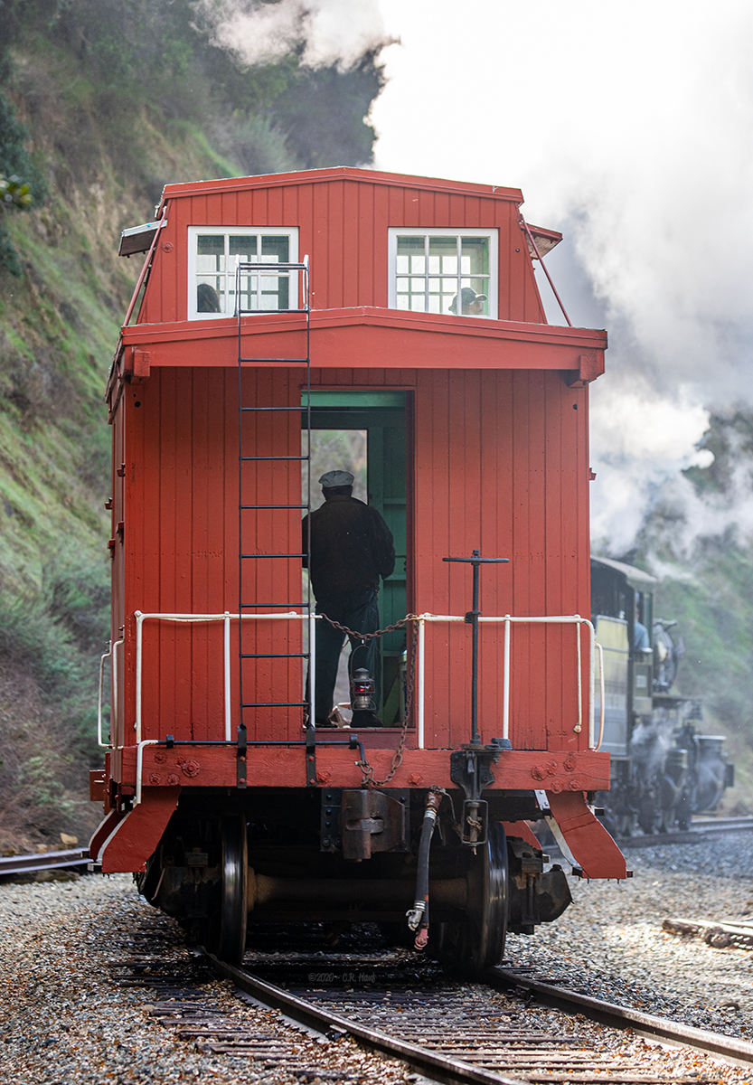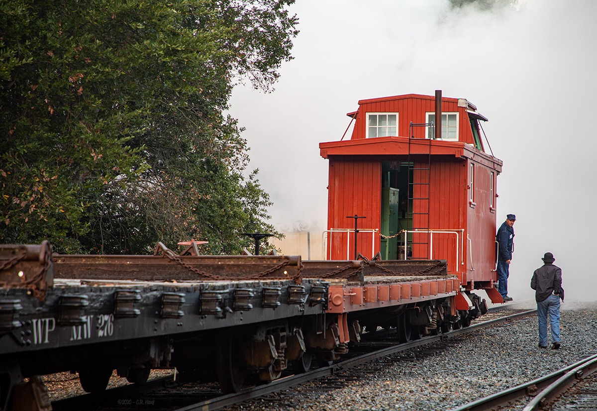 Pickering’s first caboose was an ex-Central Pacific four-wheel “bobber” style caboose, numbered “01”. This was the only caboose used on the railroad until 1940.