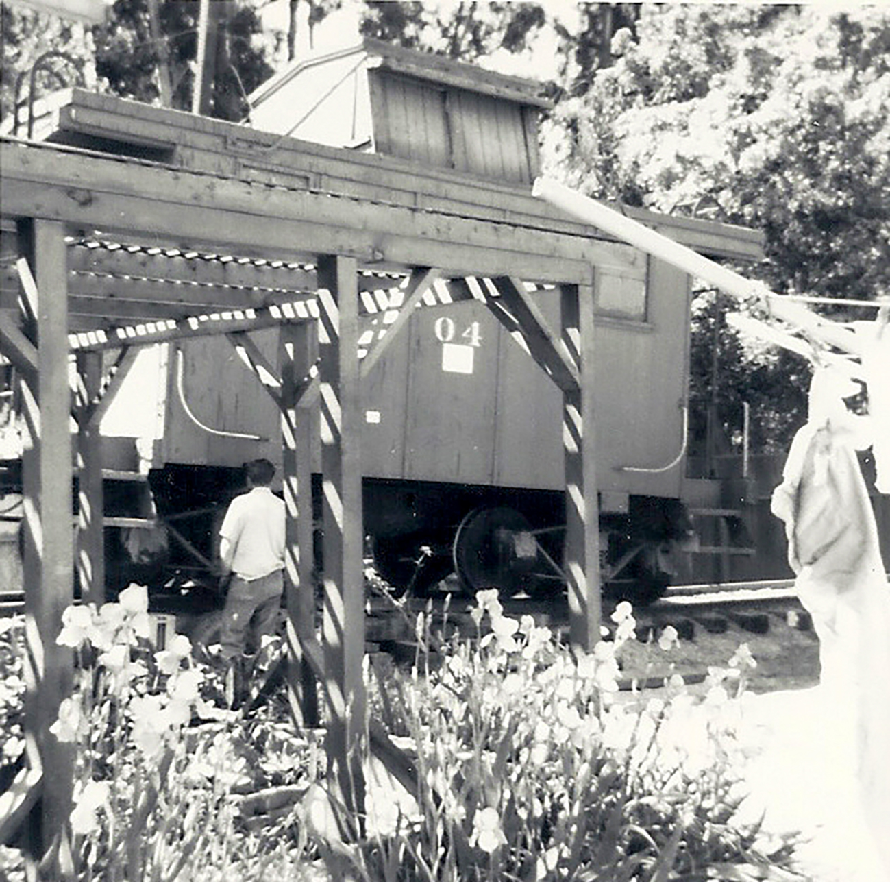 Long time PLA member Warren Smith, at age 17 had the foresight to rescue Caboose #04 from the scrapper for a purchase price of $350.00. The car was moved by rail from Standard, CA to San Leandro by the Sierra Railroad and the Southern Pacific. A sympathetic local trucking firm helped Warren by transporting the caboose from a siding at the Caterpillar Tractor Co. to Smith’s family home in 1966 for another $350. The caboose spent many years on the Smith’s family property and was visible to many BART riders once the system was in operation. In 2011, Warren offered the caboose to the PLA for preservation.