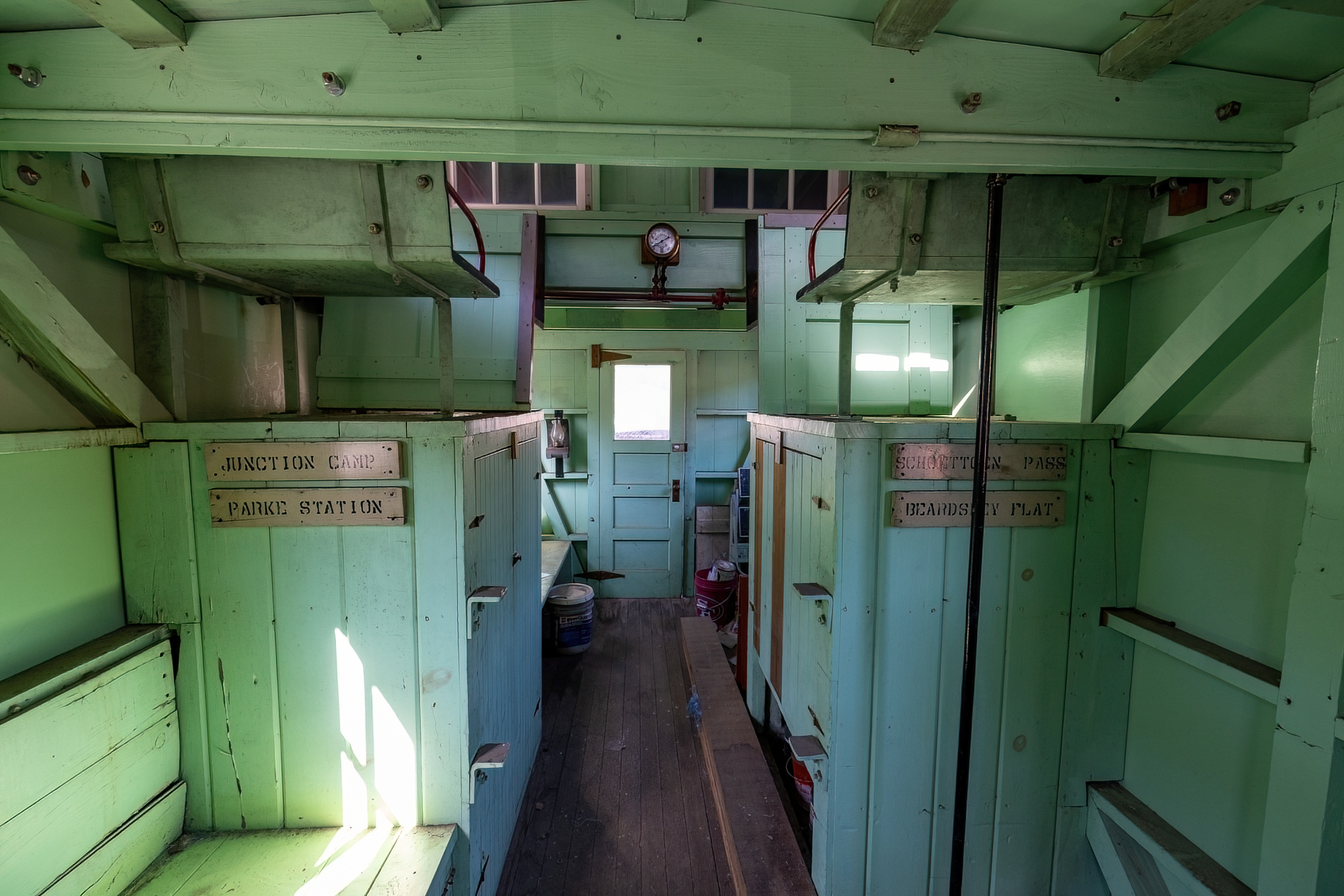 An extraordinary example of such a caboose with roots dating back to the late 1930s in northern California’s Tuolumne County, is Pickering Lumber Co, (originally the Standard Lumber Co, dating back to 1901) caboose number 04. The caboose is the only known completely original Pickering caboose left in existence. The caboose interior has been preserved as it looked in service complete with paperwork leftover from the Pickering days. The caboose makes a fitting addition to PLA’s collection of logging equipment (including Pickering Locomotives #5 and #12) and will be used in interpretive log trains when restored to service.
