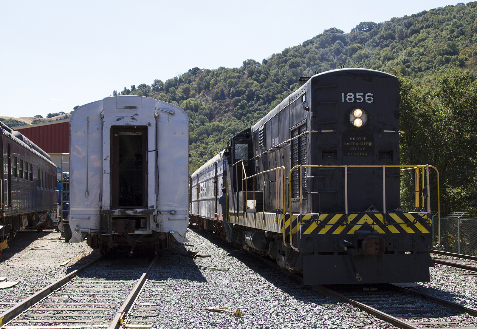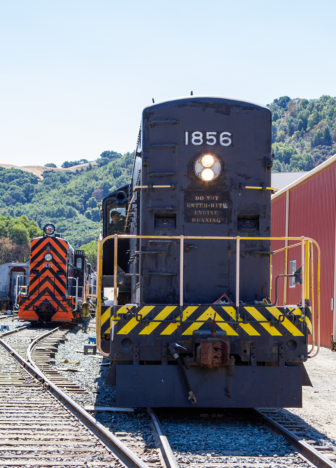 United States Army No. 1856 is a Fairbanks-Morse H12-44 locomotive built in 1953 as part of a group at a cost of $224,700 each. #1856 last served at the Oakland Army Terminal. It is a 1,200 horsepower 120 ton yard switcher. In 1944, Fairbanks-Morse entered the United States railroad locomotive market trading on their excellent reputation in diesel power plants for marine applications. Their locomotives used an unorthodox opposed-piston design engine. During the next nineteen years, F-M achieved limited acceptance and rated a distant fourth place in market share during a period when all major American railroads were replacing their steam locomotives with diesels. F-M left the locomotive market in 1963 and focused on other areas of its business.