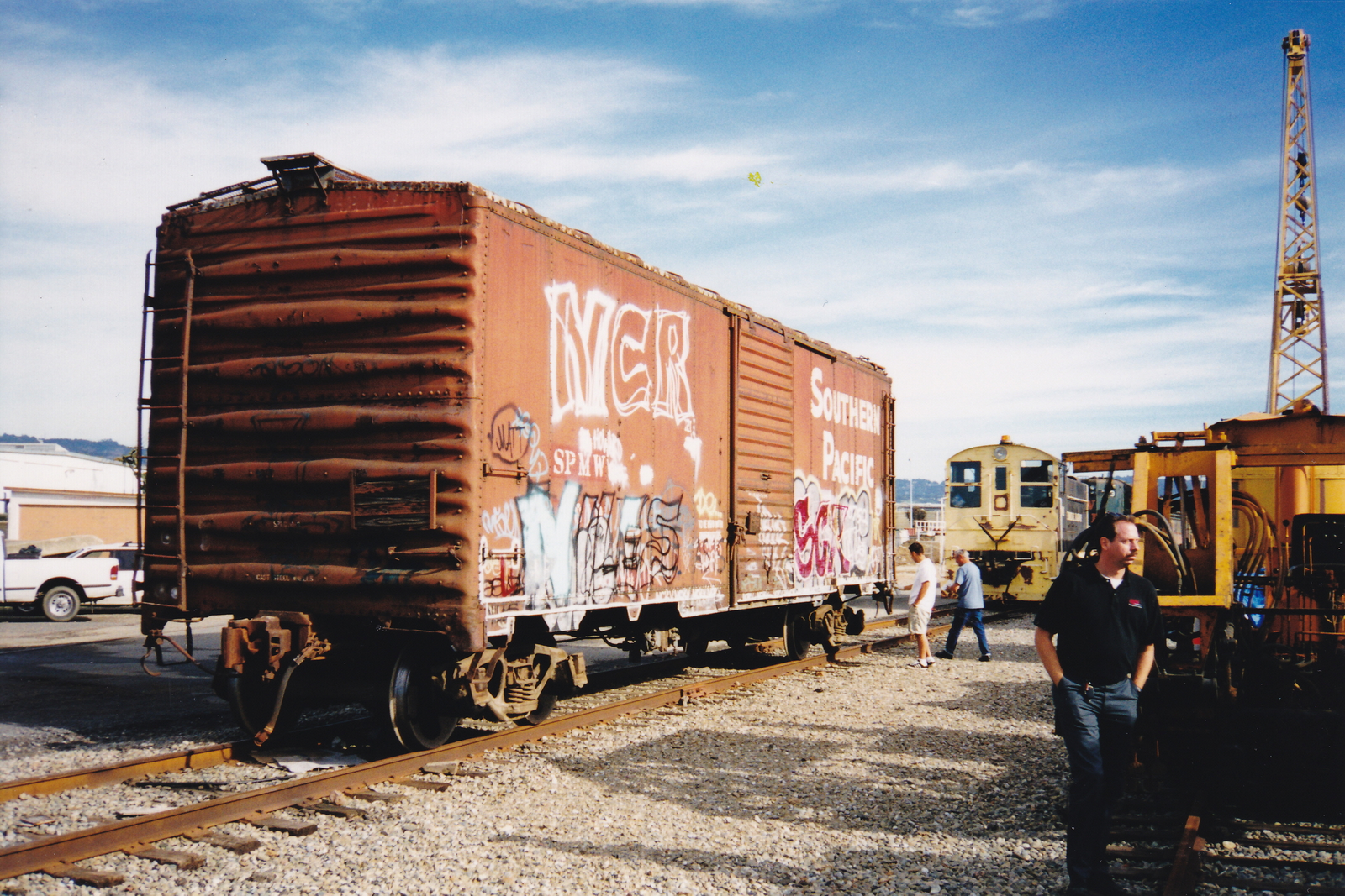 History: Southern Pacific Railroad (SP) #100752; Southern Pacific (SP) #MW6924; Southern Pacific (SP) #MW6019; Donated by Union Pacific, June 1997; Moved to Niles Canyon in big move of Jan 8, 2005. Mechanically inspected/repaired and repainted January, 2010 and then repainted again in January 2020 including prototypical lettering. This car is used in photo freight service for the museum when needed.