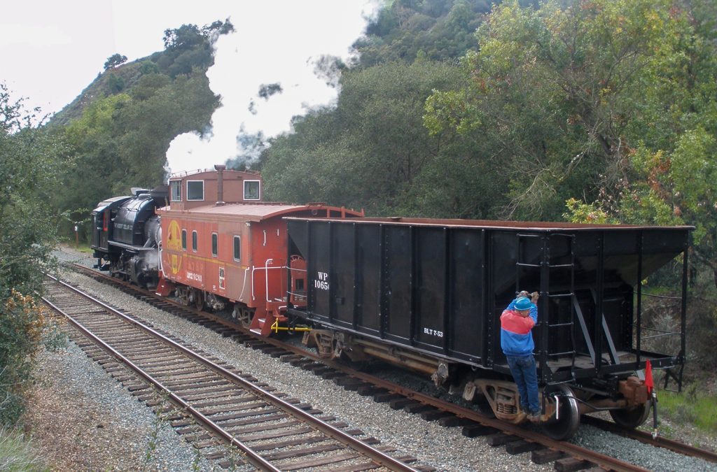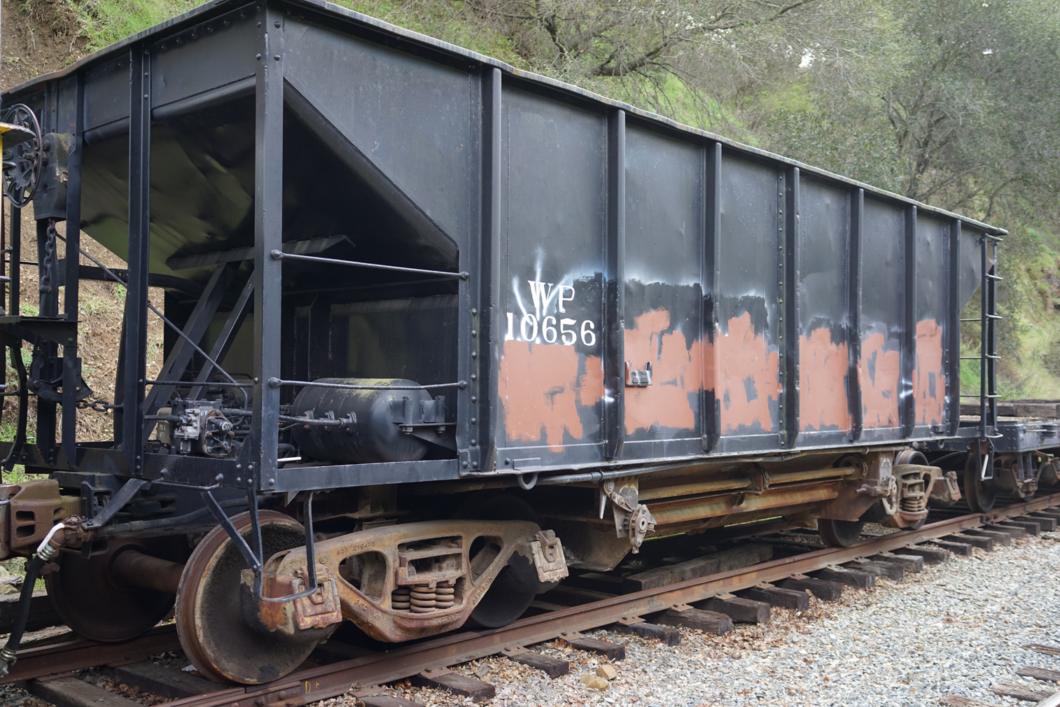 WP #10656 at CCT #6002. This was how the car looked when purchased prior to repainting into WP black by the NCRy.Repaint underway on 2/6/2010 in the NCRy Car Shop – Image by Alan Siegwarth – Used with permissionWP #10656 in ballast service on the NCRy with Robert Dollar Co. #3 as power and ballasting the siding between Dresser and Farwell bridges. 3/17/2012 – Photo by: Alan Siegwarth – Used with permissionWP #10656 in ballast service on the NCRy with Robert Dollar Co. #3 as power and ballasting the siding between Dresser and Farwell bridges. 3/17/2012 – Photo by: Alan Siegwarth – Used with permission