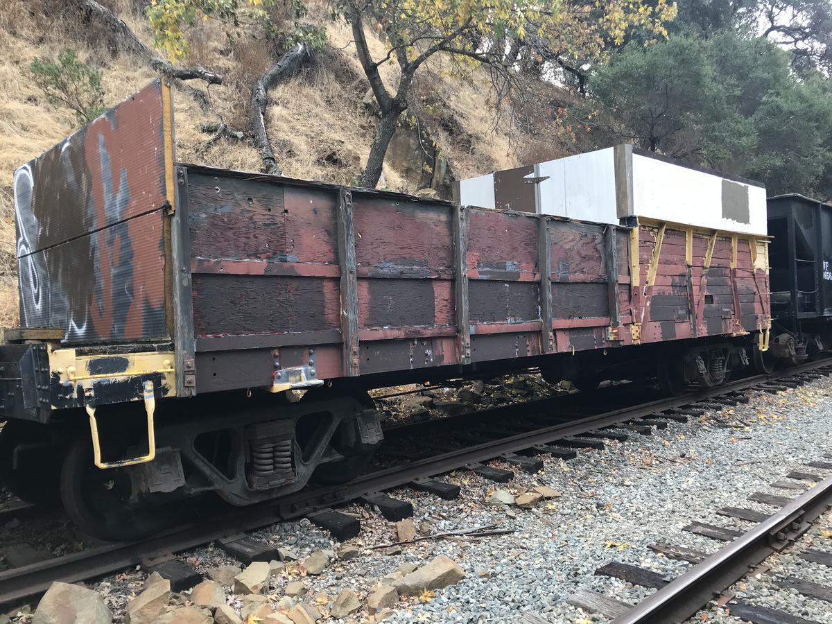 History: Western Pacific Railroad (WP) #MW8534; Levin Metals, scrap dealer, Richmond, CA, 1983; Donated by Levin Metals, June 1983; Converted for use as a generator car for Christmas trains (Date?) Removed from service, 2010 and stored at Brightside, CA. We are looking for a new home for this car.