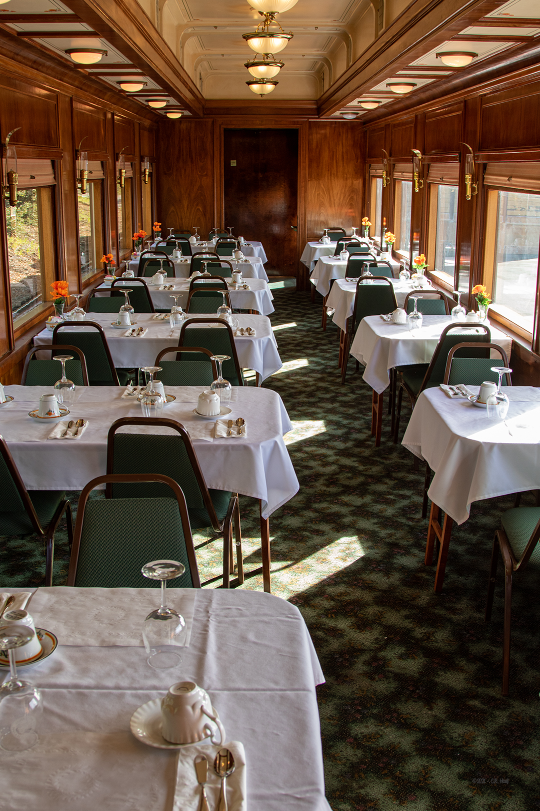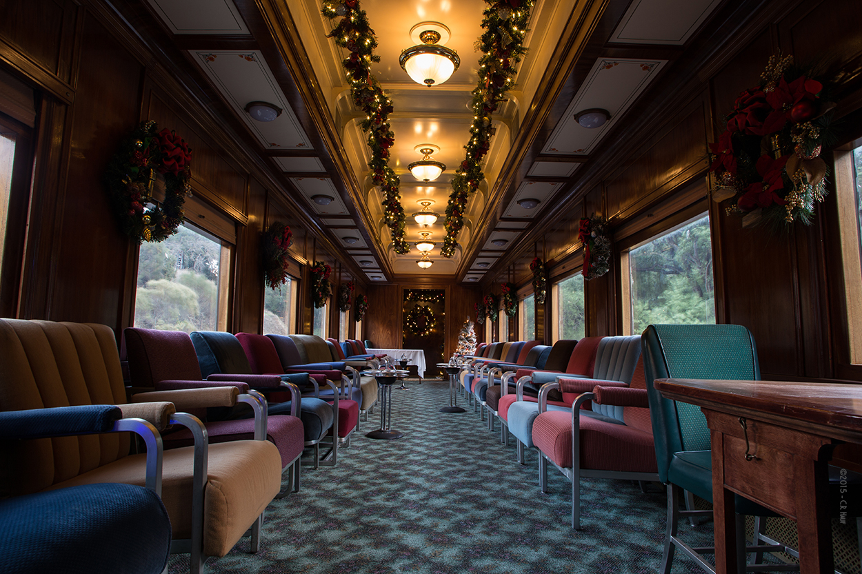 In March of 1958 the car was retired as a diner. In July of 1958, the car was moved to maintenance -of-way service as Southern Pacific (SP) #MW7068. PLA/NCRy acquired the car in 1997. The car has been fully restored inside and out with ongoing maintenance taking place all the time. It received all new exterior paint in 2007 in the NCRy’s car shop (photo available below). The car is operated for a variety of our special events on our railroad and can be configured as a diner or as a chair car.