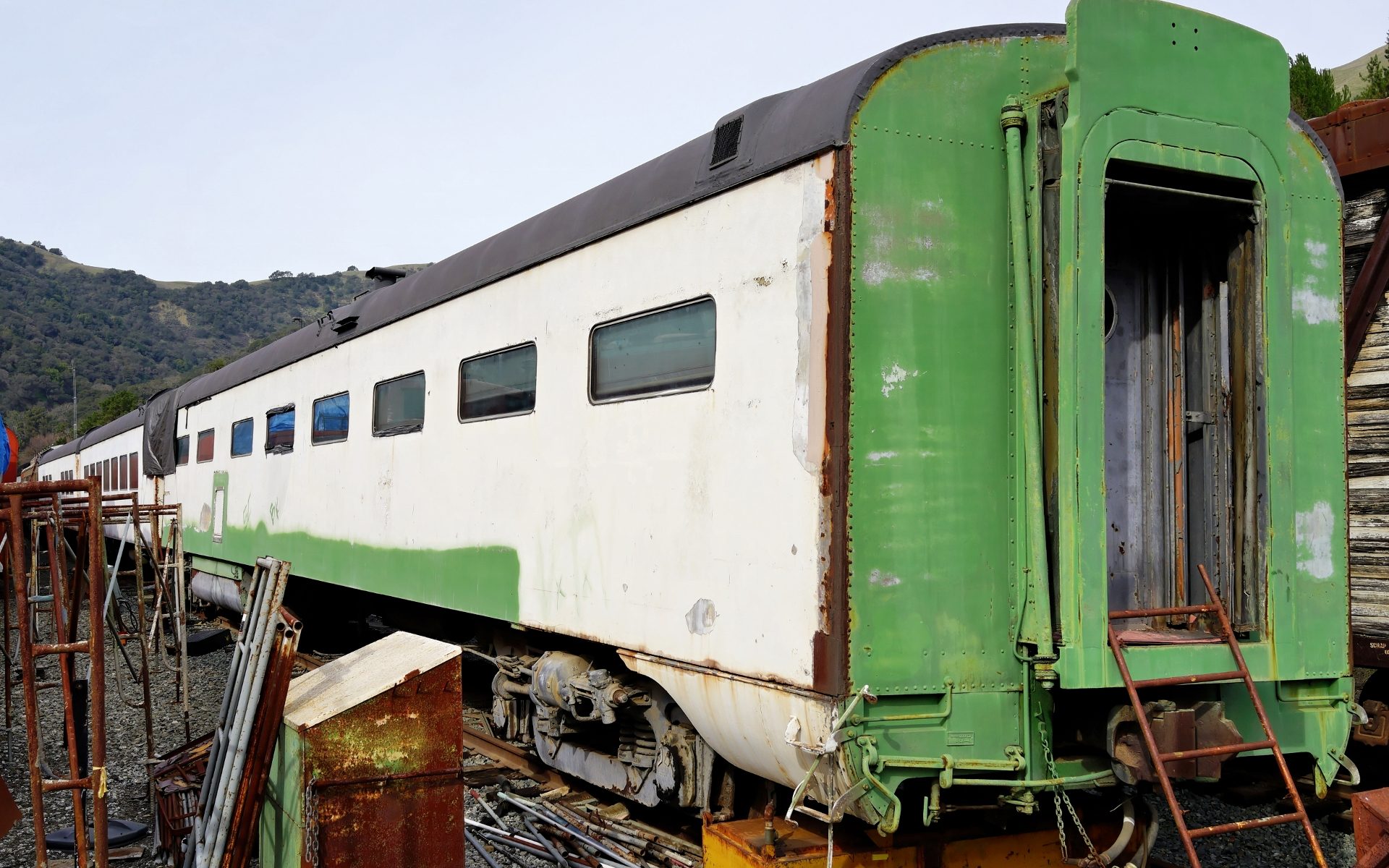 The car escaped scrapping by being sold into private hands, and was operated briefly and then stored in Jamestown, California. In the 1970s, plans to use the car in the consist of the barnstorming bicentennial American Freedom Train went as far as having the car painted in a base coat of white, and having much underbody equipment stripped for upgrading. Those plans were dashed by the car’s heroic dimensions, once it was learned by AFT organizers that the car was too long to fit the display tracks available in many of the train’s desired stopover towns and cities.