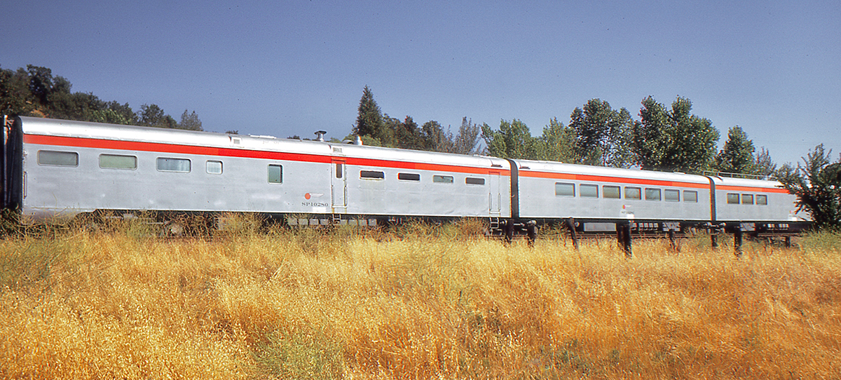 The SP 10282 unit housed comfortable lounge chairs and a mirrored half-circle bar. The center unit, SP 10281, contained sit-down dining tables for up to 56 passengers. The SP 10280 unit contained the kitchen and pantry, and also provided the dining car staff with three-tiered bunk and shower space for eighteen crewmembers — traditionally African American chefs, cooks, dishwashers and waiters — and a sleeping room with two berths for the Caucasian dining car steward.