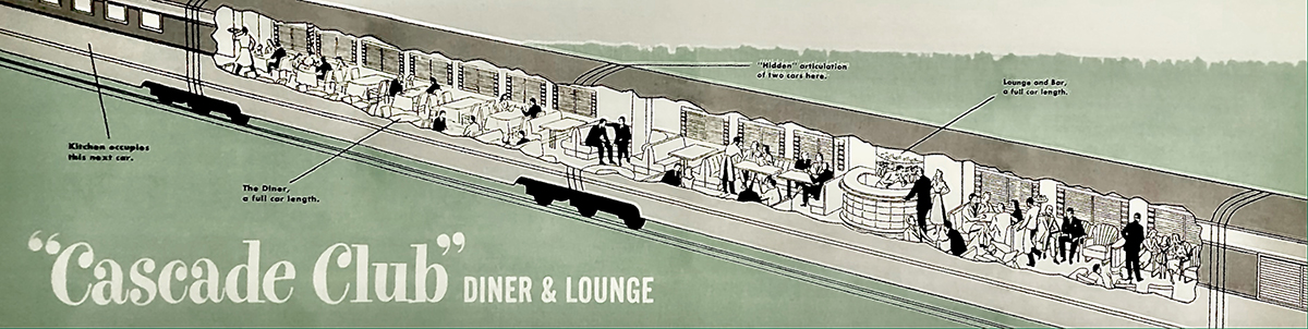 As a Dining Car and Bar Lounge, it was the social hub at the center of the Southern Pacific Railroad’s first class “Cascade” overnight all-room sleeping car train from Oakland, California to Portland, Oregon.