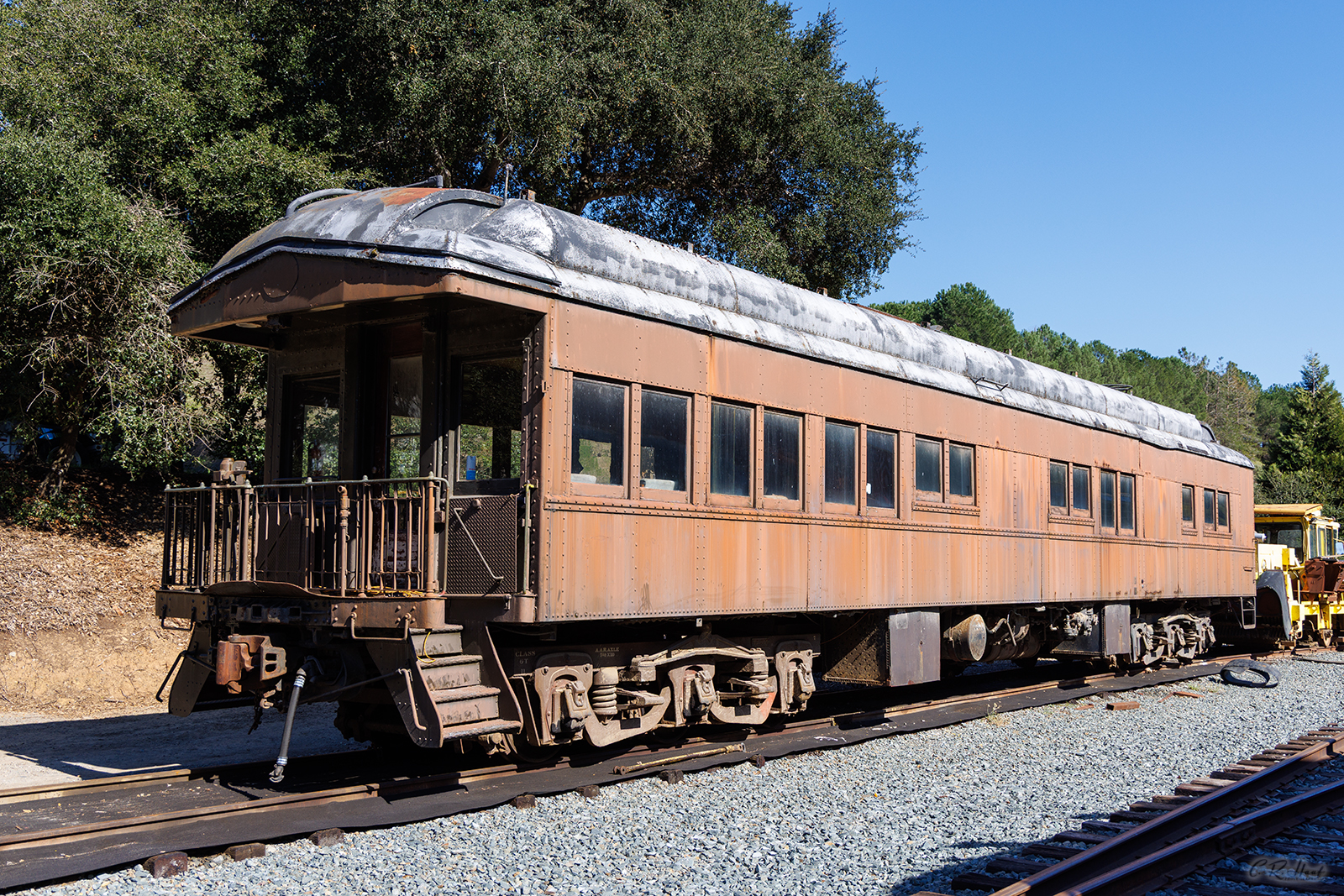At an unknown time the car was released for use by maintenance of way and renumbered Southern Pacific (SP) #MW 5441. Acquired by PLA, July 1975; Moved to Niles Canyon in big move of Jan 8, 2005.