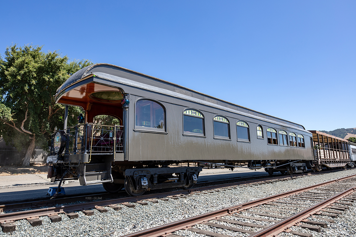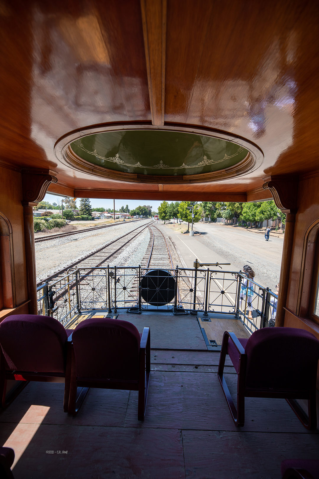The Yosemite Valley Railroad was completed in May of 1907 between the California Central Valley town of Merced, and El Portal, the western boundary of Yosemite National Park. The railroad was 78 miles long, and catered to Yosemite visitors during most of it’s 40 years of existence. Upon completion of the railroad, a three car passenger train was ordered from Hick’s Locomotive and Car Works of Chicago. One of these wooden cars was an observation car, with a rear platform surrounded by an ornate railing.