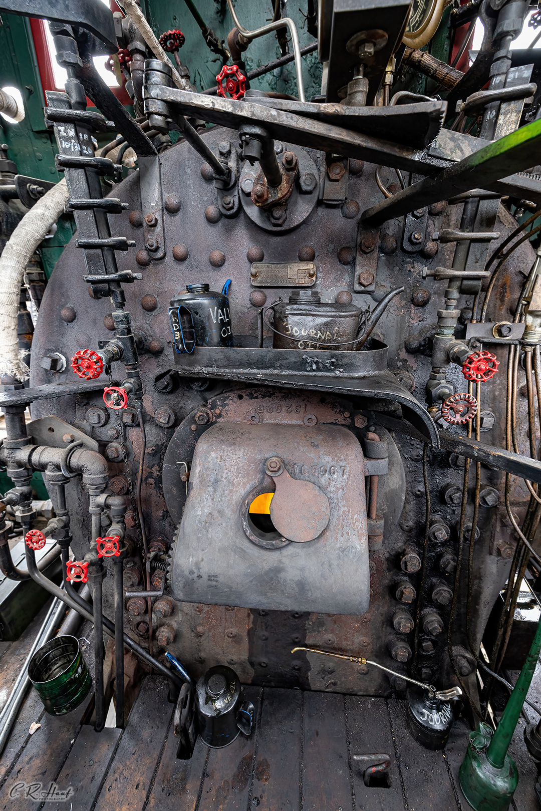 Take a spin around the #4’s cab in this 360 image as it was just about to be lit off to bring steam up for a Sunday run. The #4 lives inside an RV tent so pardon the green outside the windows. 360 image – Christopher Hauf – Used with permission.