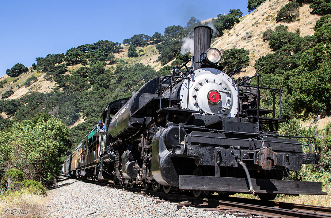 In late 1986, along with Heisler 5 and Shay 7, the #4 was moved out of Castro Point to Niles via a special train movement. The locomotives were put in storage along with other P.L.A. equipment. On January 8, 2005, the #4 and many other pieces of P.L.A. equipment were moved into Niles Canyon and onto the Niles Canyon Railway. The #4 remained in storage until June 2008 when rebuild commenced and she was test fired on May 5, 2012 and test run August 25, 2012. The #4 has recent received extensive running gear work and is one of the steam locomotives used to power the Niles Canyon Railway’s trains.