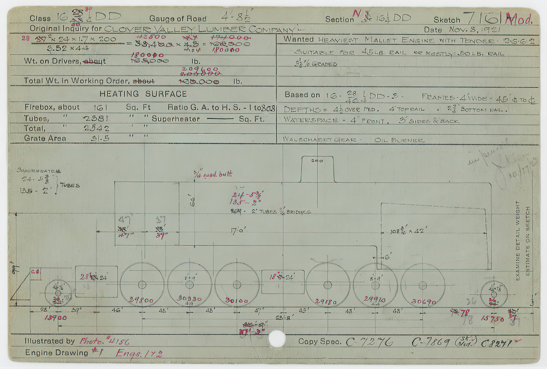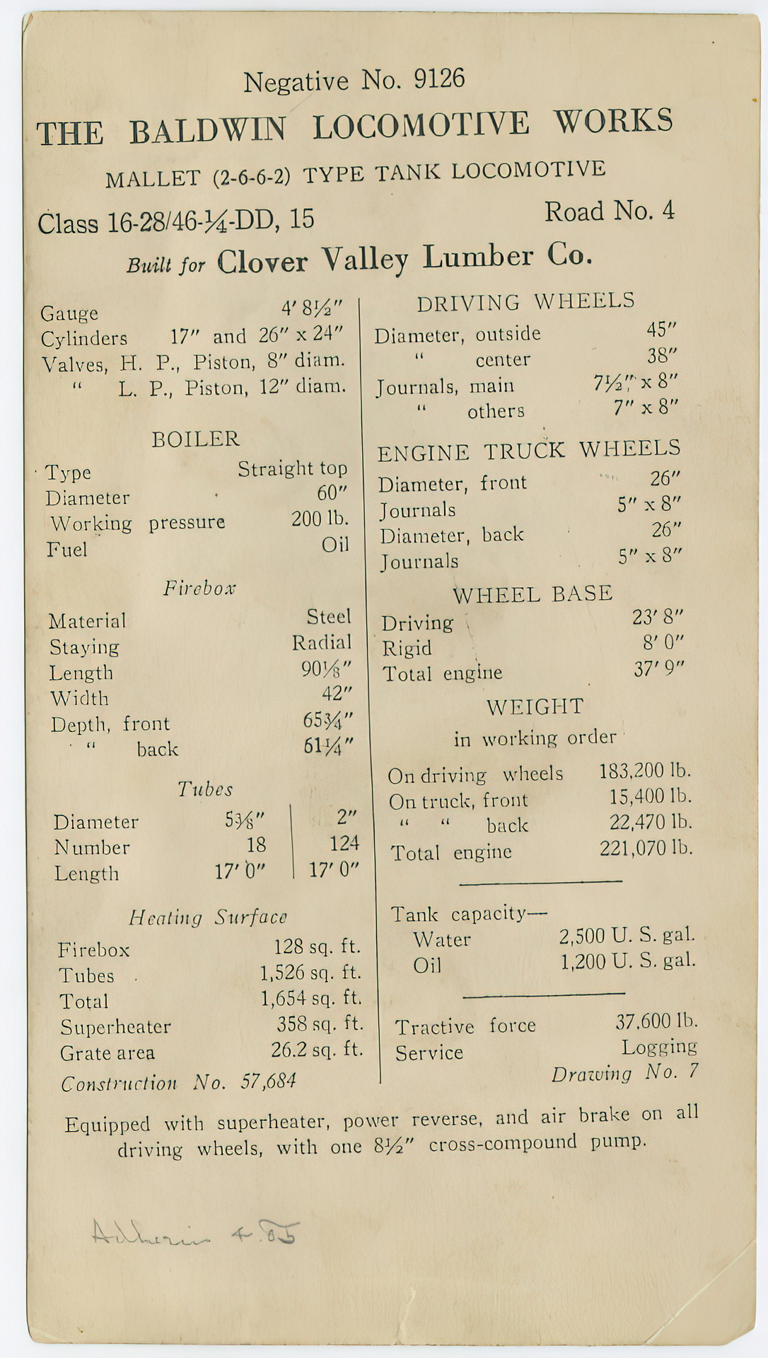 Baldwin builders information on the Clover Valley Lumber Co. #4 from the