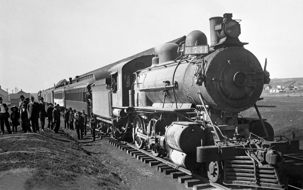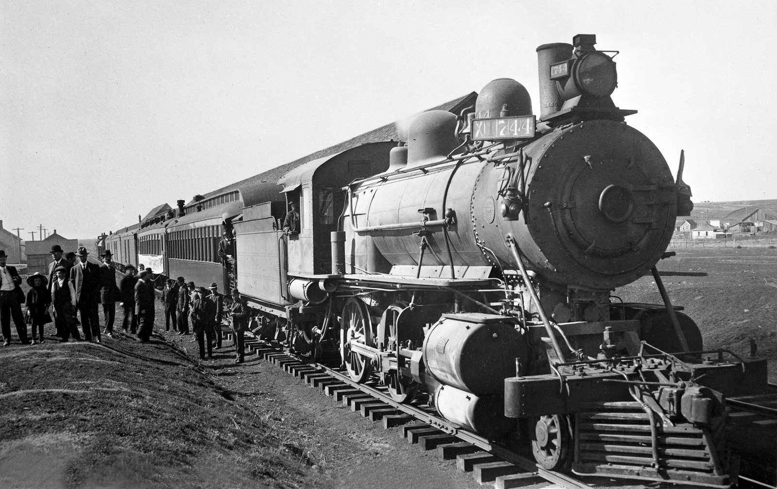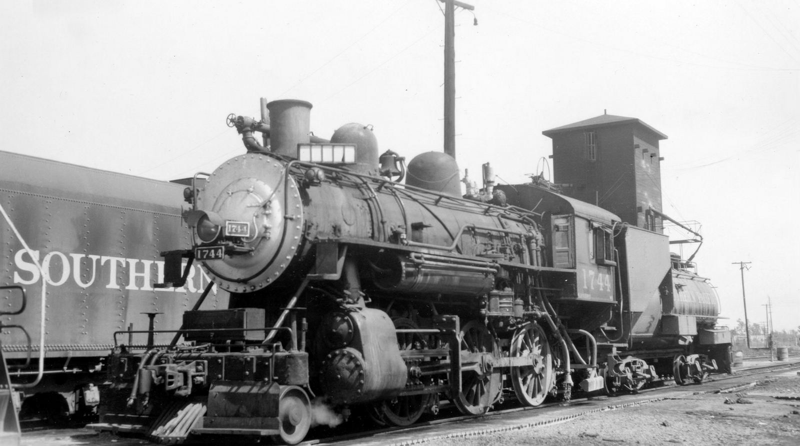 We have been given access to this wonderful collection of early 1744 photos by the Pacific Northwest Rail Archives. Of most interest is the first photo which is the only one that has turned up so far of the locomotive in its original compound as-built form. In addition to the compound cylinders, note the acetylene genenerator on the running board in front of the cab and its mating headlight mounted on top of the smoke box. As usual, captions are included with each enlarged photo.