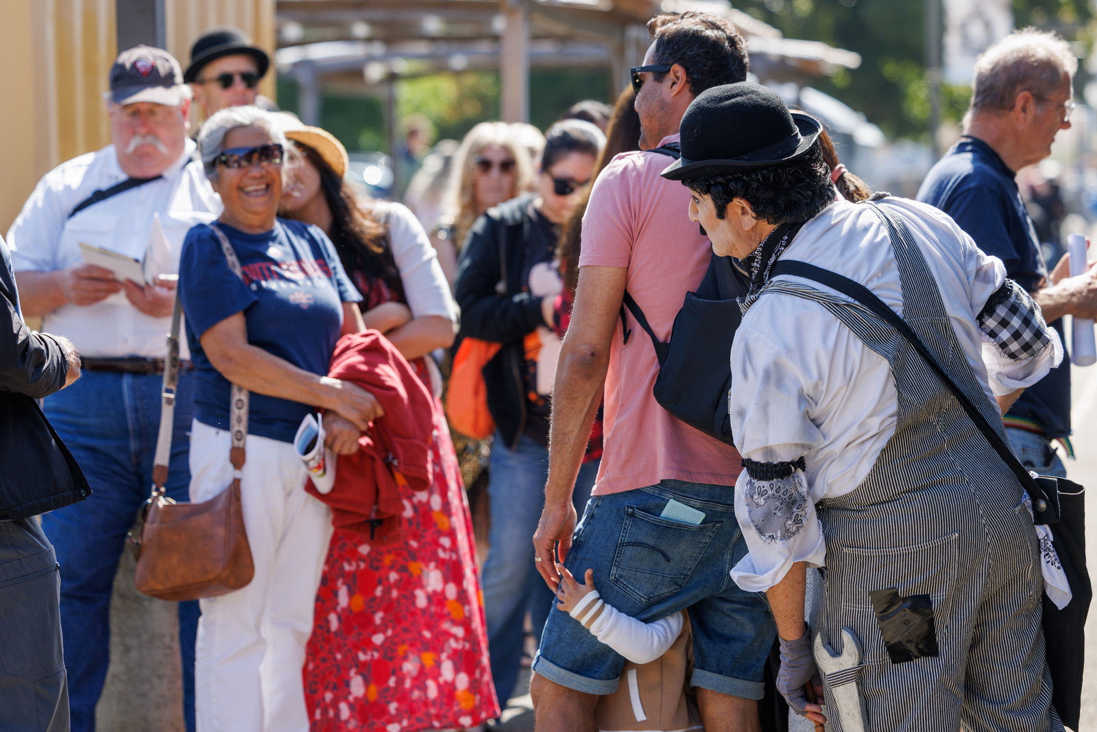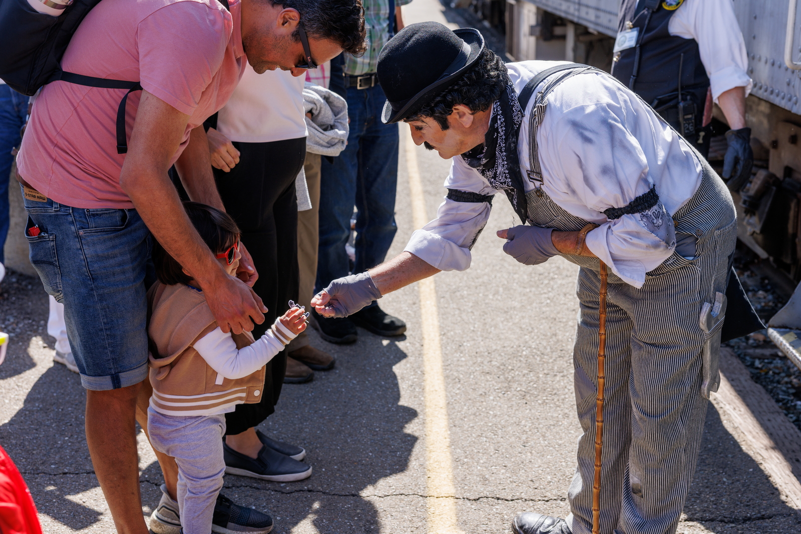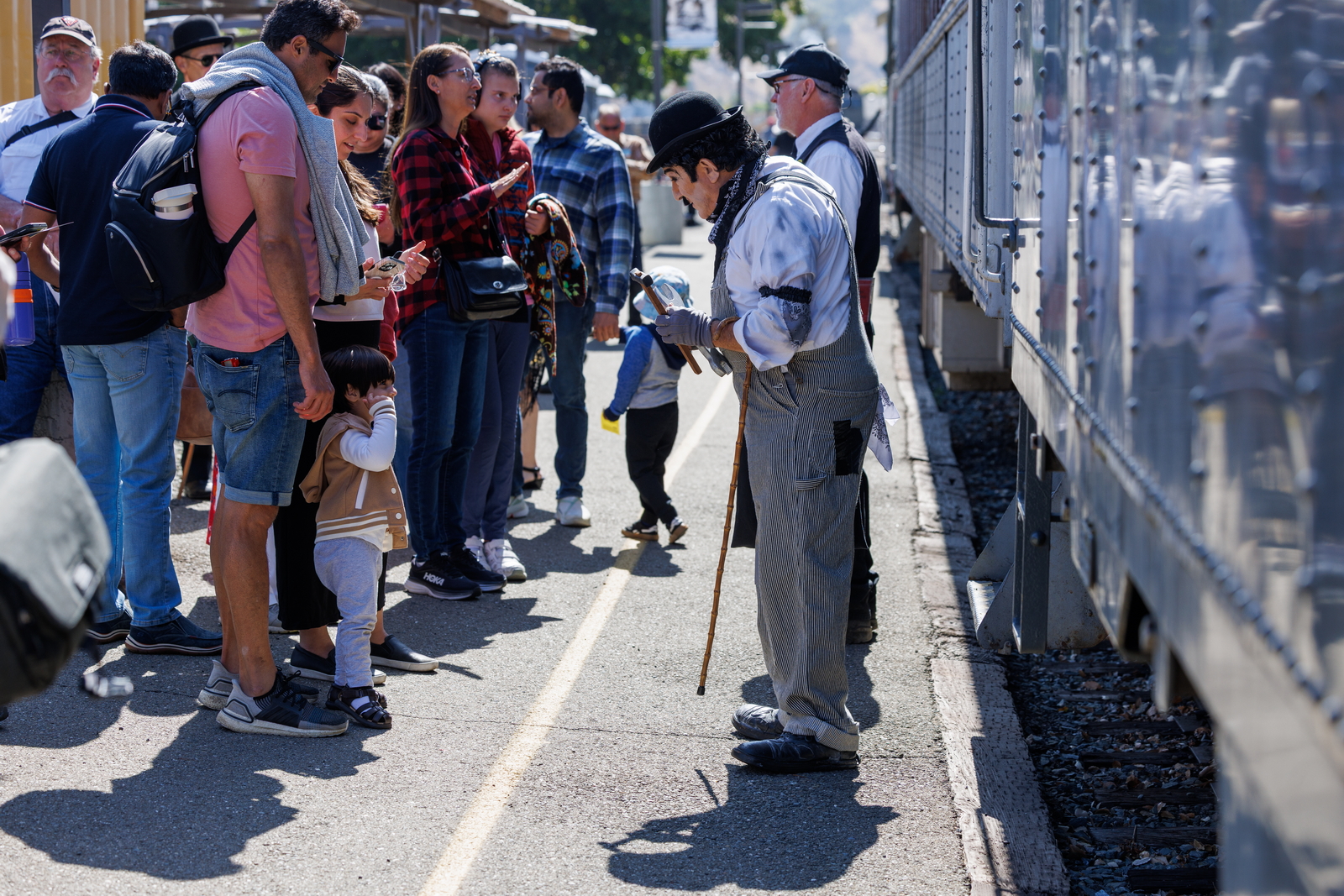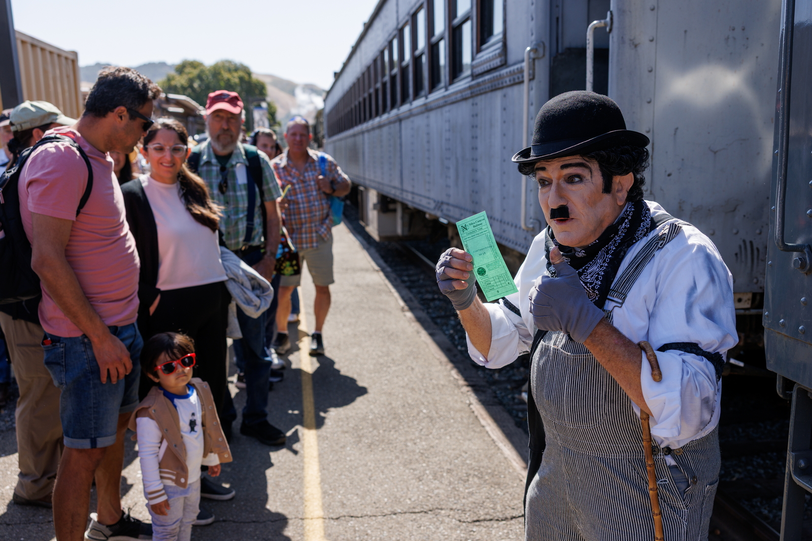 For our 10:30 AM departure, we noticed a familiar face in the crowd, the man of the weekend, Charlie Chaplin himself. Here is a set of photos of Mr. Chaplin interacting with our passengers and thanks for coming over from the Niles Essanay Silent Film Museum for a visit and ride. We encourage everyone to check out this wonderful museum in downtown Niles filled with local film history!