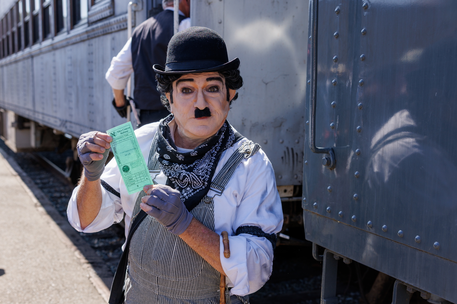 For the weekend of May 17th and 18th, 2025, our Niles Canyon Railway operated our weekend excursions out of our Niles Station in celebration of Charlie Chaplin Days in Niles, the location of early silent film production by Chaplin and Broncho Billy in the 1910s. For the Sunday rides, our steam locomotive, Robert Dollar Co. #3, led the trains.