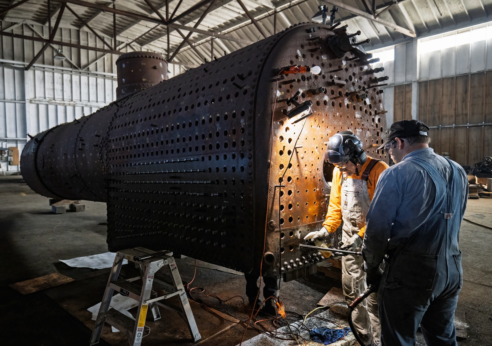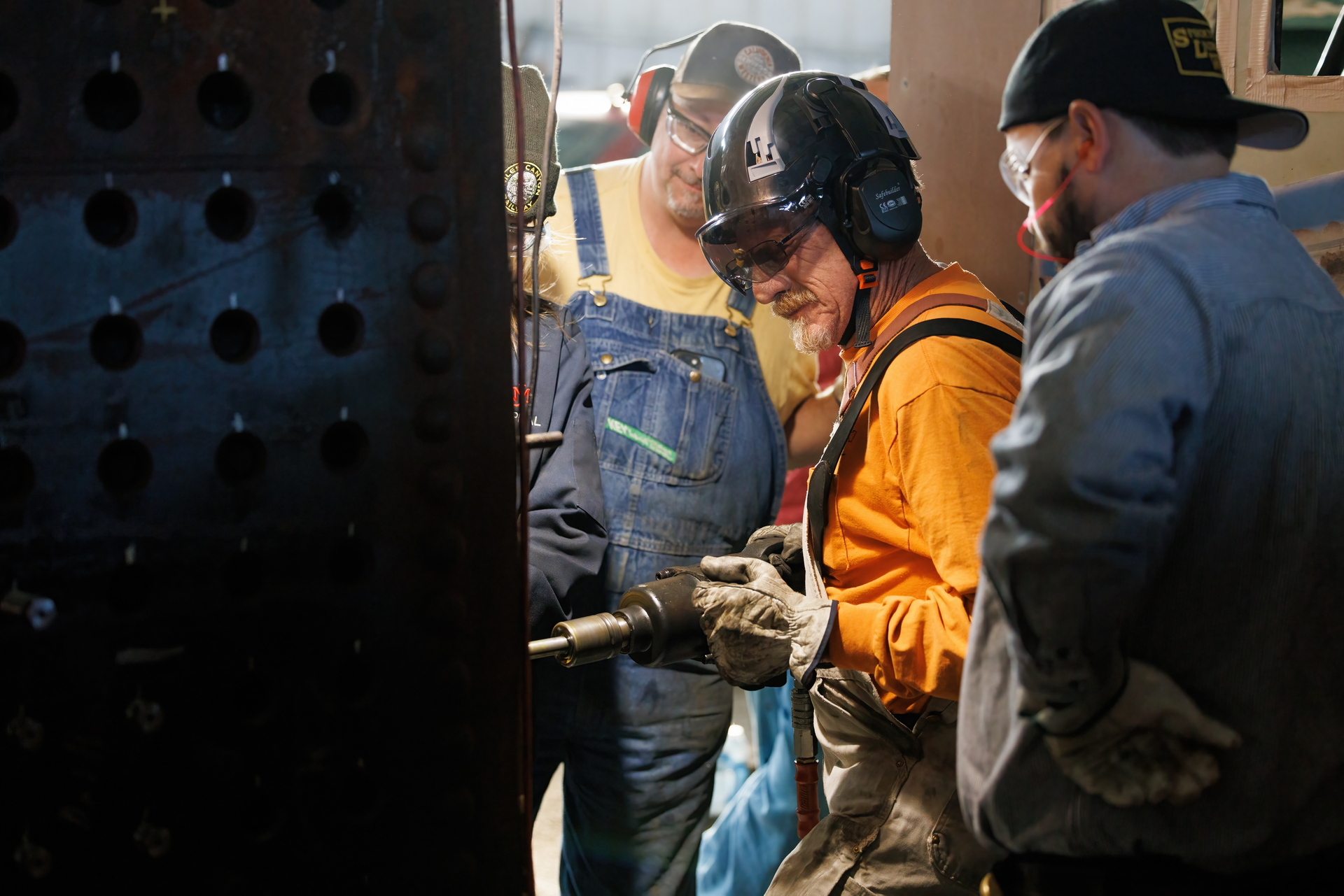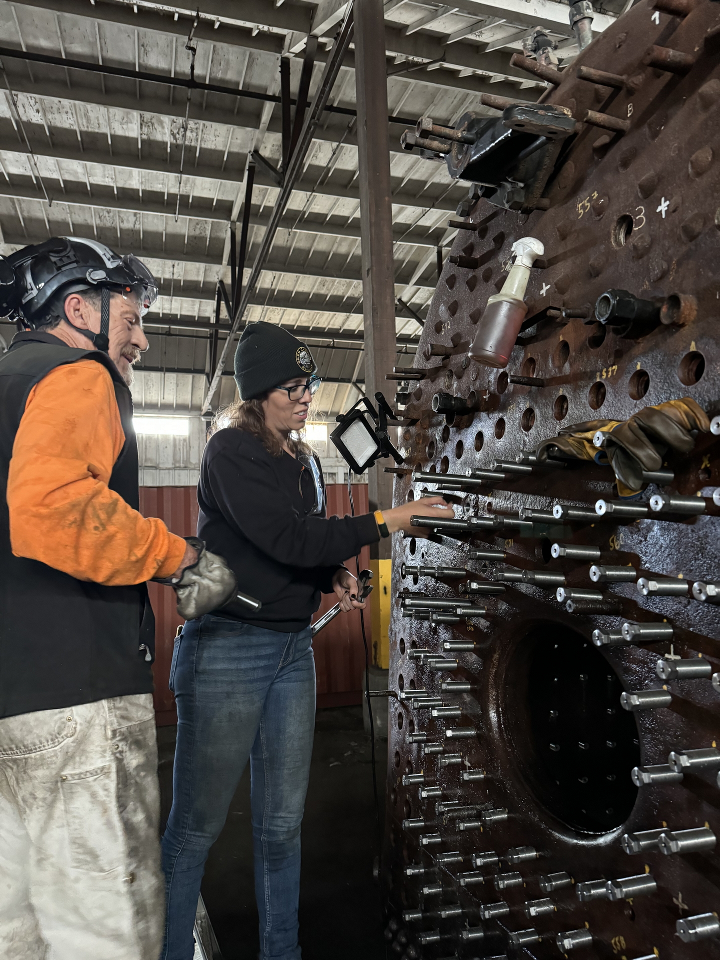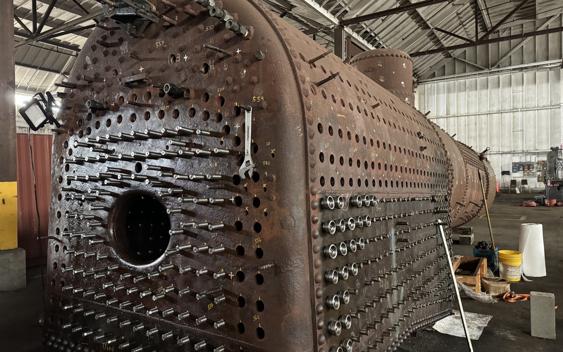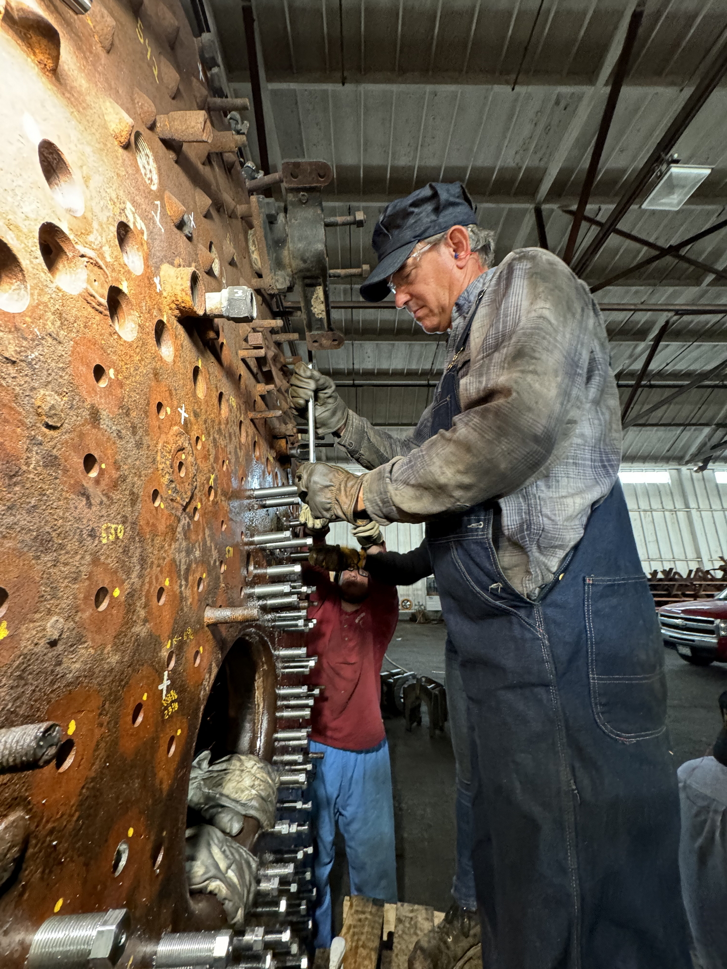 On the weekend of October 26th and 27th, a crew of six volunteers from our Niles Canyon Railway Steam Department headed north to the shop of our contractor, Stockton Locomotive Works, to do some more work on the boiler for our Southern Pacific steam locomotive #1744. Two other crews of volunteers had already gone up at different times between late 2023 and late 2024 to supplement our contractor’s resources since the boiler is seeing significant rebuilding.