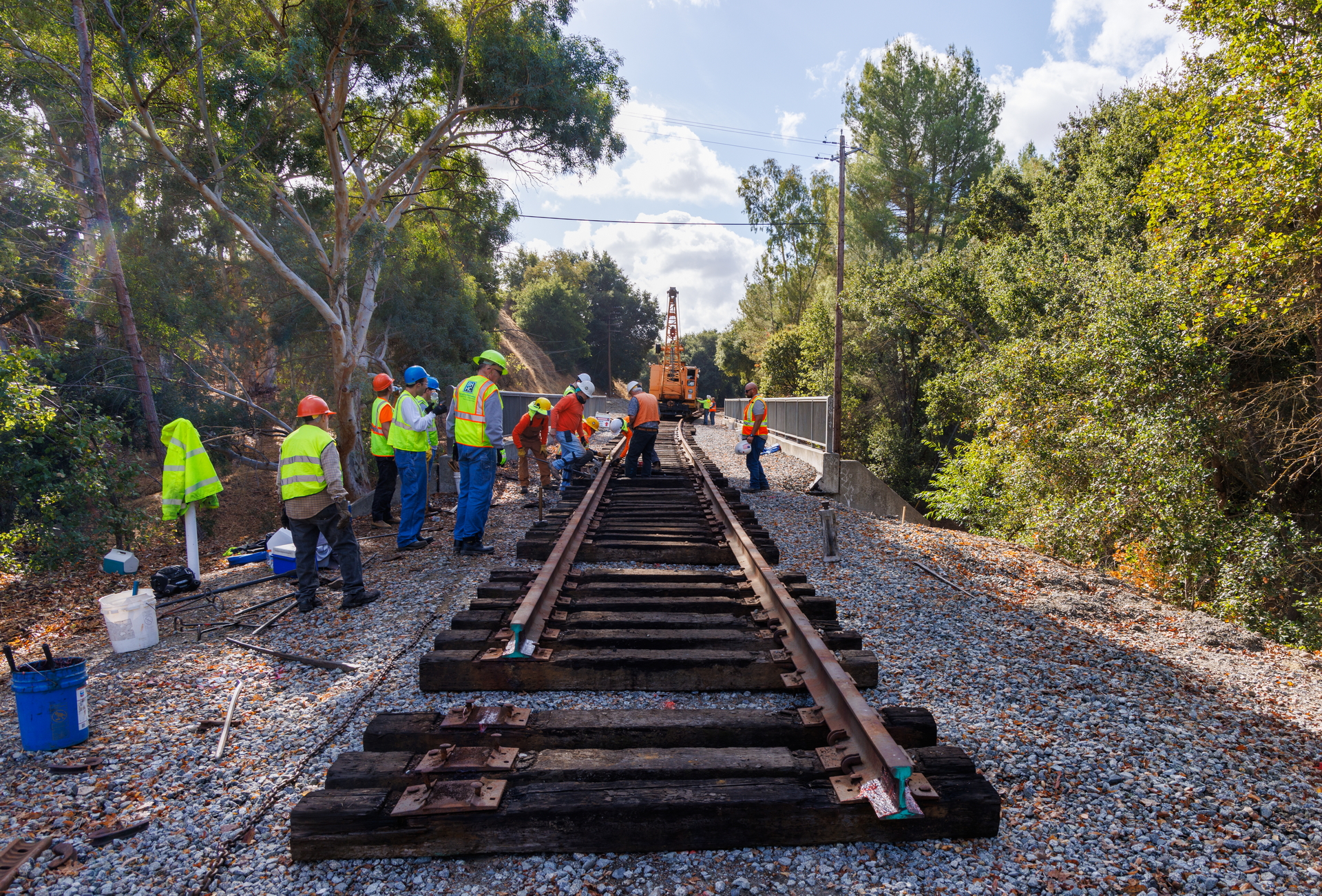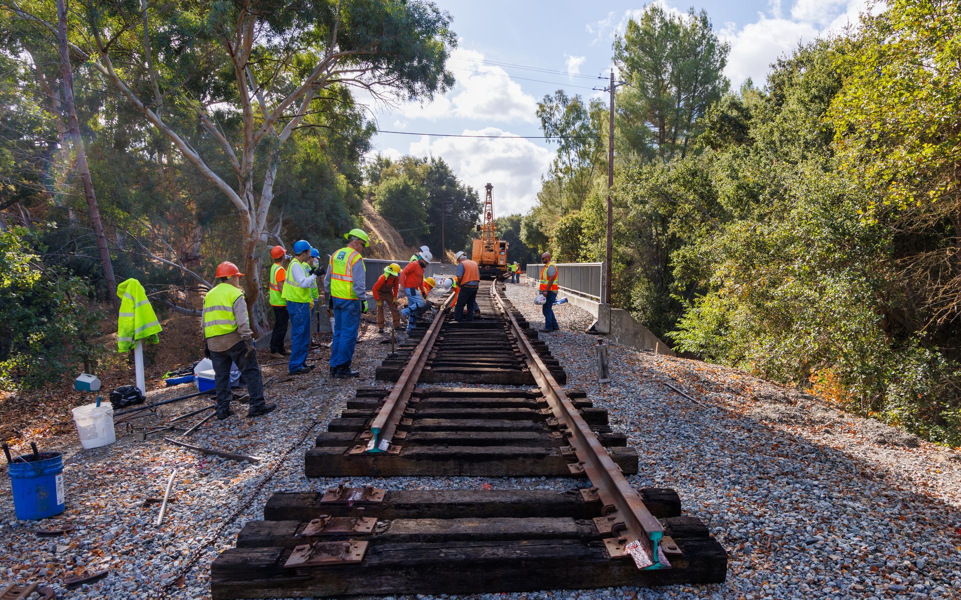 Our Build East Track Construction Team was back out on the railroad on Saturday, November 2, 2024 and reached another milestone with track now extending to the east side of Castlewood Bridge.