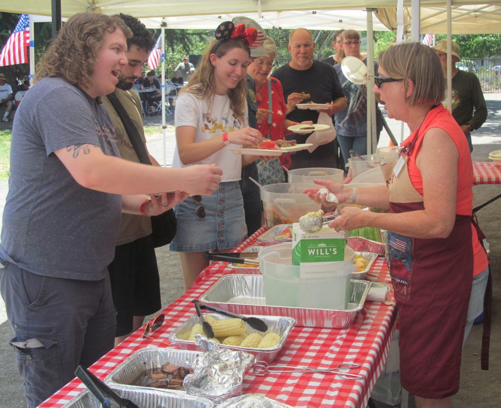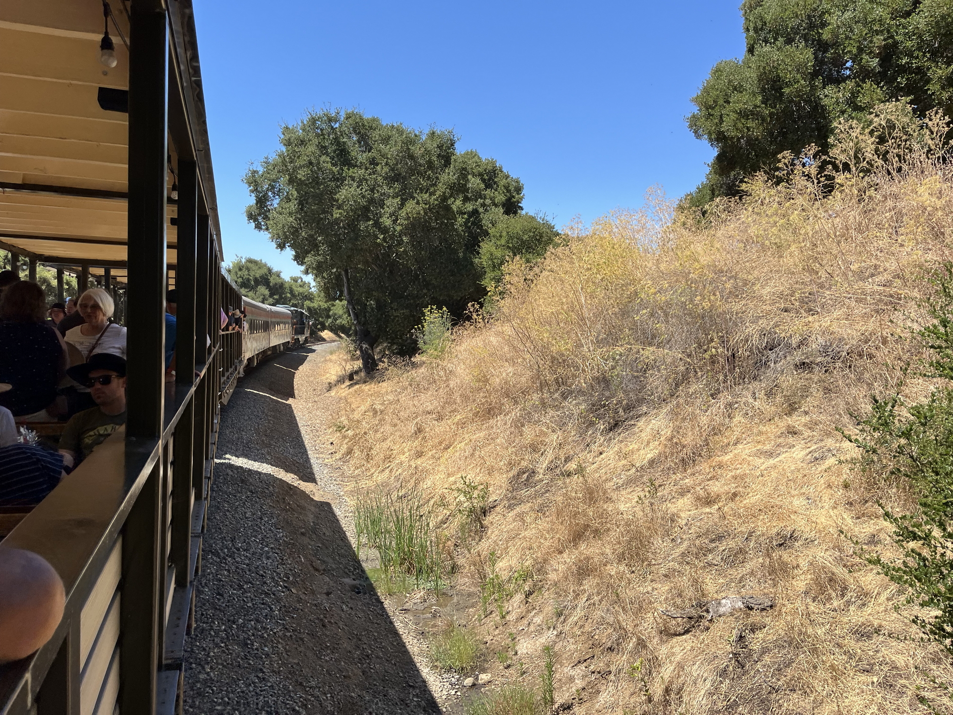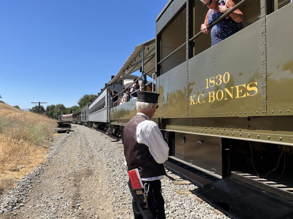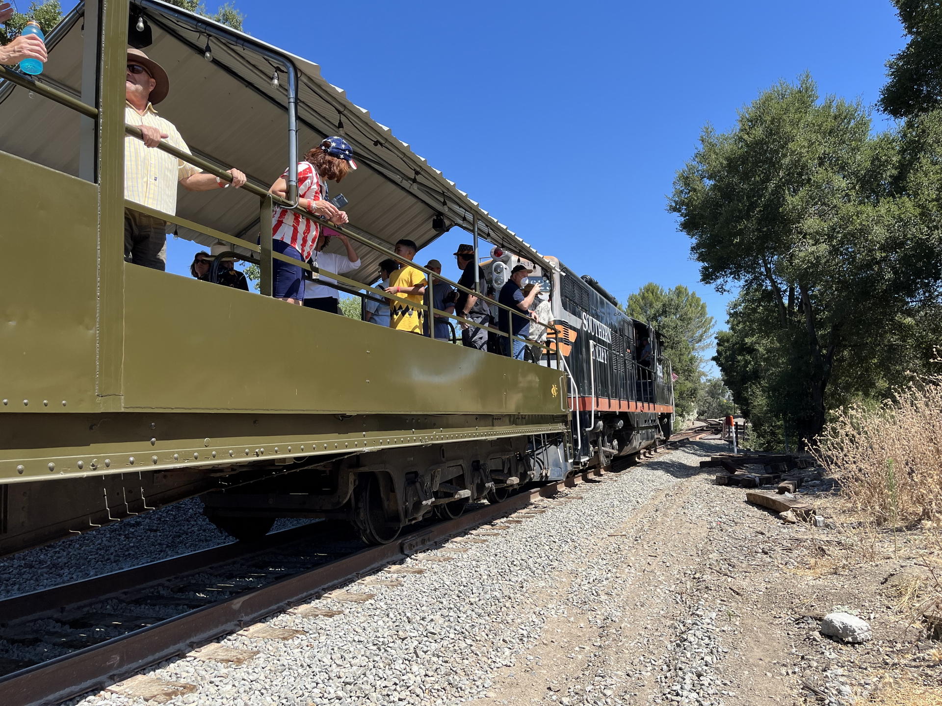As has been our yearly tradition for many years, the Niles Canyon Railway hosts a picnic and train ride on the 4th of July for its members and guests. This year was no exception with somewhere over 150 people in attendance. They enjoyed a great BBQ lunch in the Sunol Depot Gardens, and a train ride which took the train from Sunol all the way east to the new end of track at Happy Valley Bridge then all the way west to Niles only to then return to Sunol.
