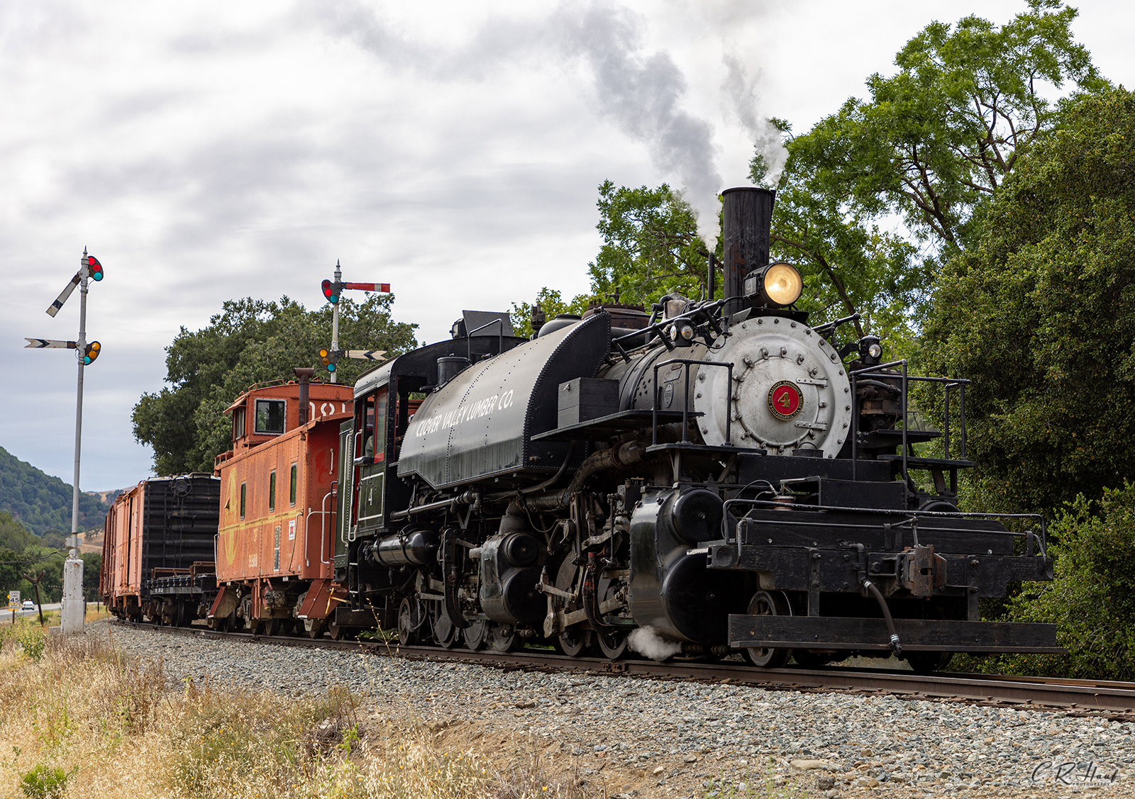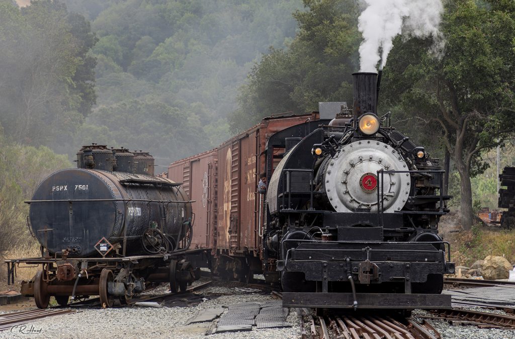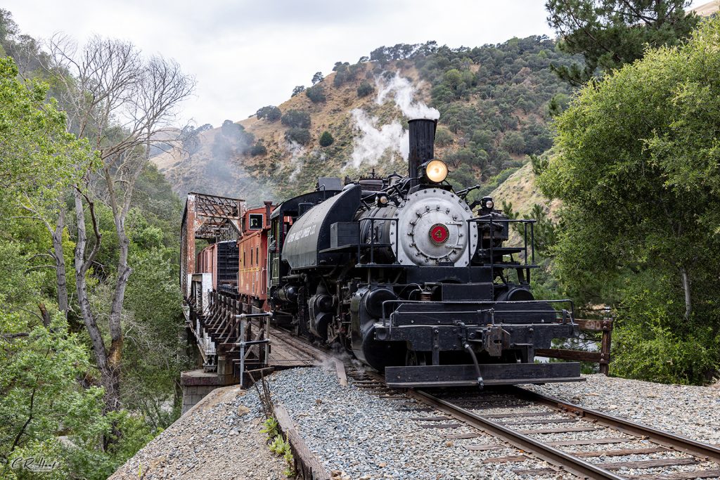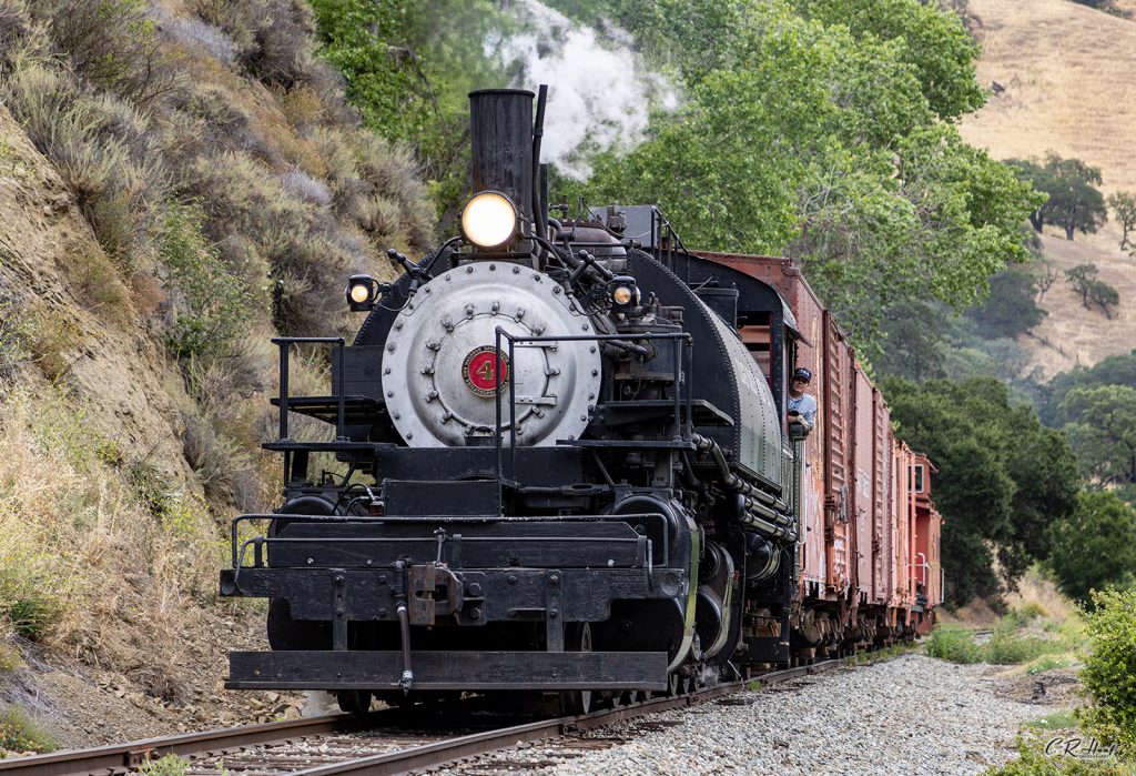 On June 4, 2022, the Niles Canyon Railway Steam Department took Clover Valley Lumber Co. #4 out on a test run with some of the museum’s historic freight cars from Brightside yard to Sunol and then on to Niles back to Sunol and then back to Brightside. It has been nearly two years since #4 had plied the rails of Niles Canyon since Columbia River Belt Line Railway #7 was holding down primary run duties.