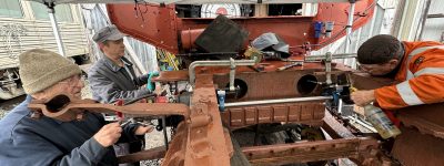 Typically you find that many parts of restoring steam locomotives are never easy or simple. Take the task of re-drilling just one hole in Southern Pacific #1744’s frame. What sounds quite simple was just the opposite.