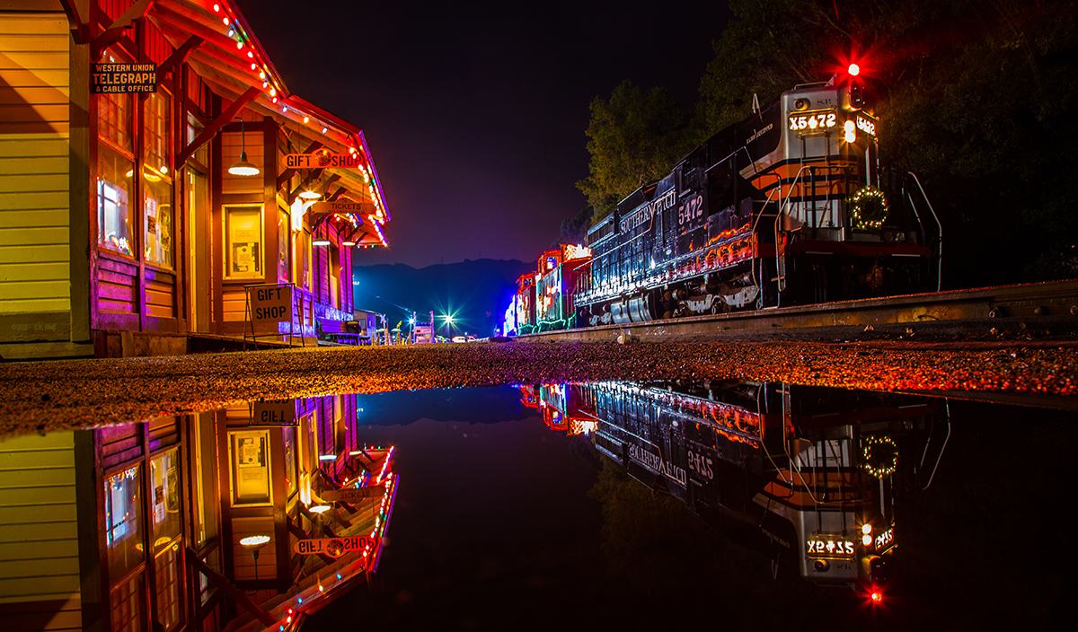 The Train of Lights offers a rare opportunity to experience a train ride through Niles Canyon at night. With one departure from Niles at dusk and a second departure from Sunol after dark, you can choose your favorite time to ride.