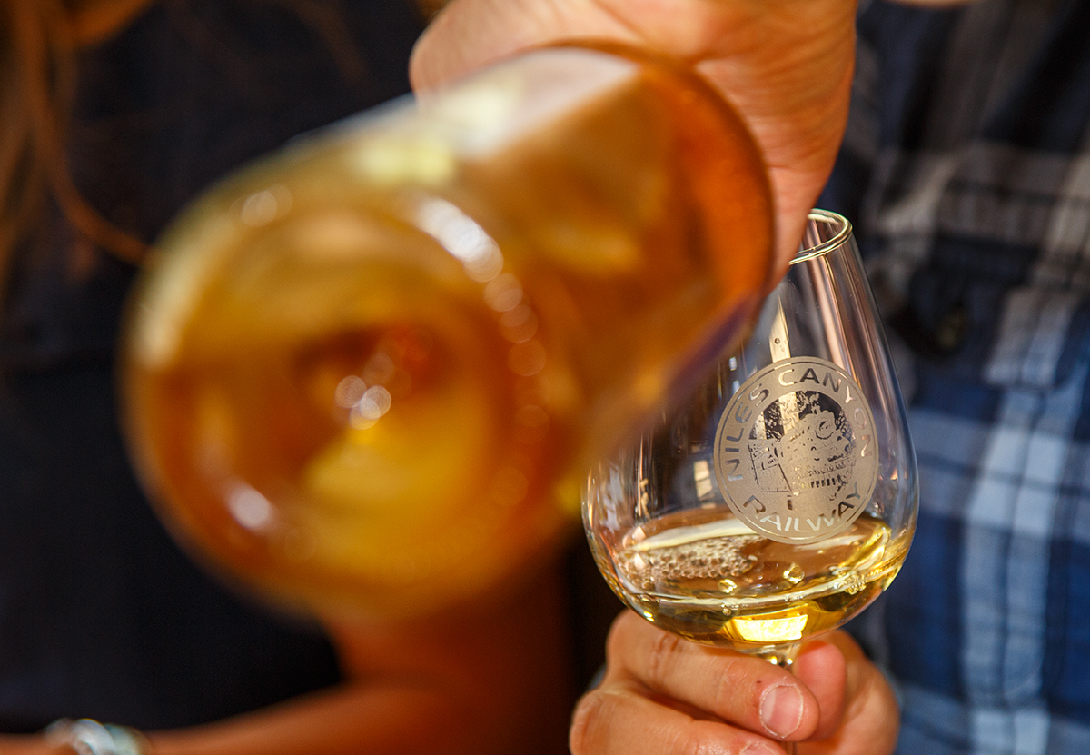 Enjoy a leisurely train ride with wine tasting, great scenery, and charcuterie.