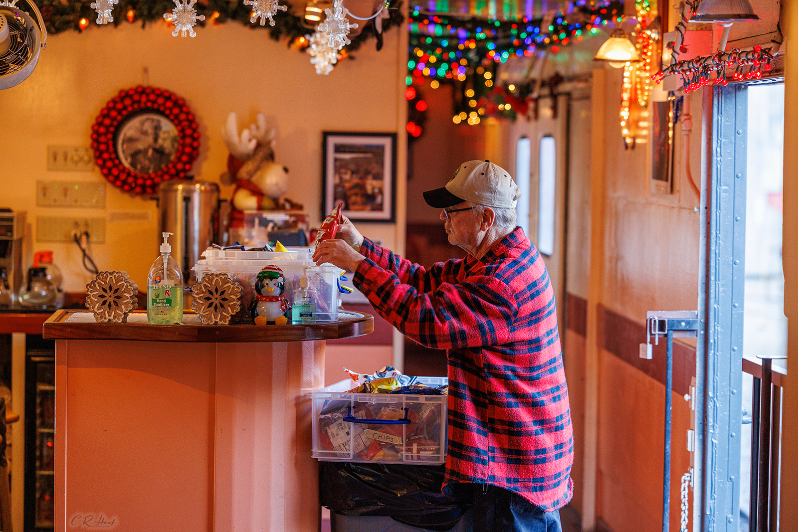 For the Train of Lights, the snack bar volunteers would need to work both the 4:30-6:00 and the 7:30-9:00 trains to retain continuity in the snack bar and make sure everything is stocked and ready for both trains, so the day would be from 2:00PM when you would arrive at Brightside, our train yard, and be on the train until 9:30 when it gets back to the train yard.  The train departs our train yard at 3:00, and when on the train the snack bar volunteers would bag cookies, stock the snack items in the bins and put items on the counter.  They would also help take the snack items to the dome and parlor cars if needed.  They would then sell the items to the passengers during the rides. The time goes really fast and it’s so much fun to interact with the passengers selling snacks and drinks during the rides. Everything is $2.00 except water is $1.00.
